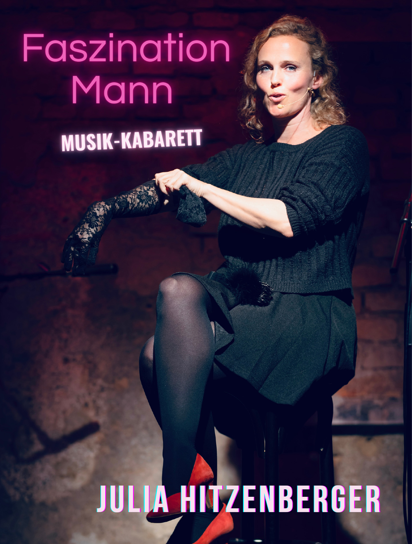 Julia geht dem Phänomen Mann mit Gitarre, Witz und einer guten Portion Neugier auf den Grund. Mit Humor, Charme und Selbstironie betreibt sie Feldforschung der besonderen Art – über das männliche Wesen: vom bayerischen Urtyp, über den Kita-Super-Daddy bis hin zum italienischen Casanova und alles dazwischen.