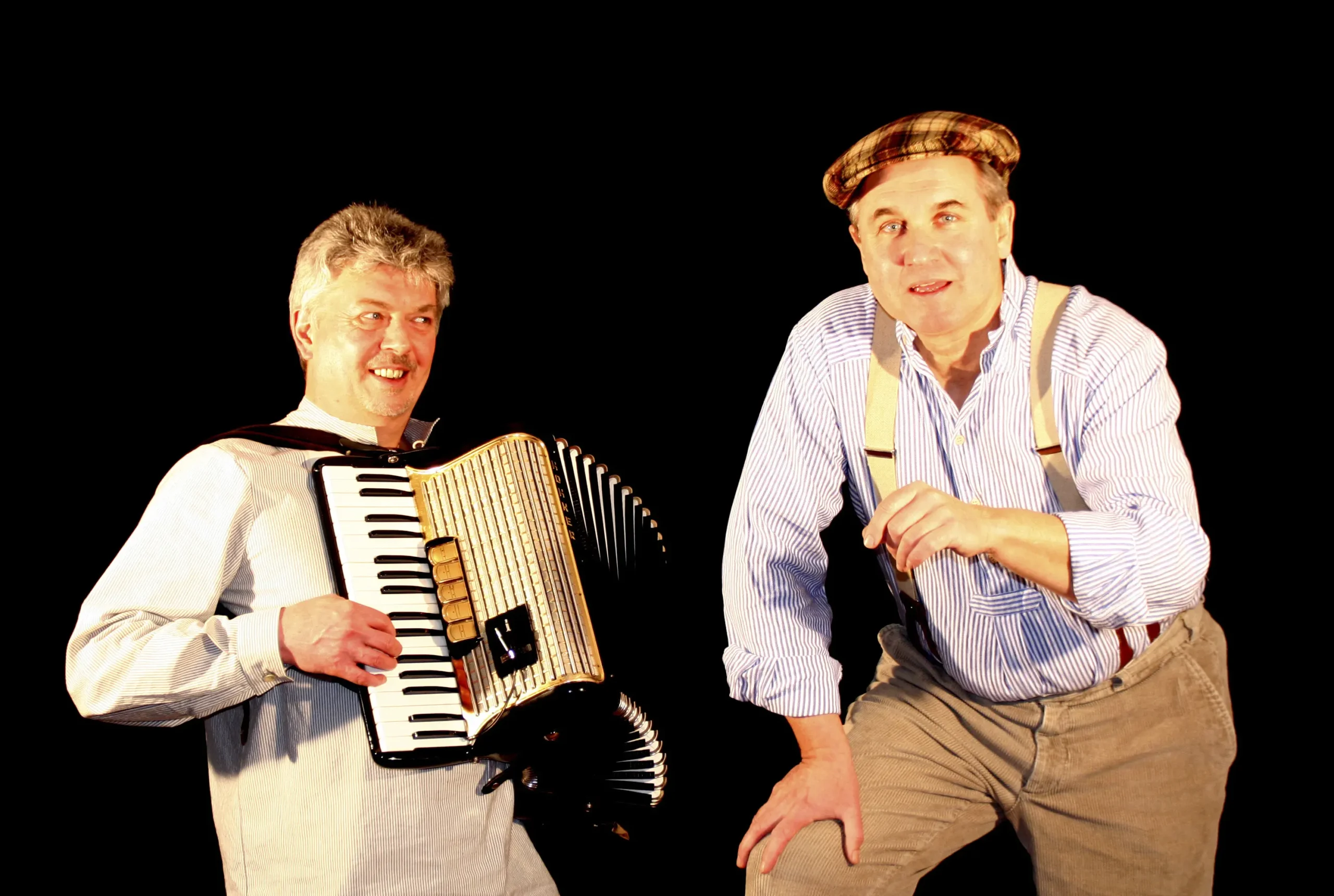 Norbert Heckner und Helmut Knesewitsch haben ihre Zuhörer mit bezaubernder Leichtigkeit in Gesang, mit Spiel am Akkordeon und mit Münchner Geschichten begeistert und in die damalige Zeit versetzt.